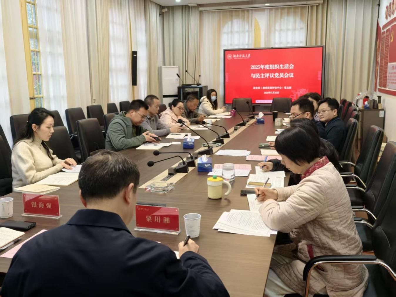 3月26日上午,教务处(教育质量评估中心)党支部在教务处201会议室召开2025年度组织生活会及民主评议党员会议。机关党委副书记(主持日常工作)粟用湘到会指导。会议由党支部书记安宁主持,支部全体党员参加。
